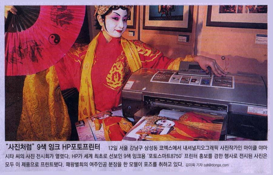 글로벌 프린팅 및 컴퓨터 전문기업인 HP는 세계적인 사진작가를 후원하는 프로그램을 통해, 자사의 프린팅 기술을 적용한 사진전을 진행했습니다. 2006년 한국에서는 마이클야마시타의 전시회를 청계천 광장에서 진행했었습니다. 이 전시회를 홍보하기 위한 컨셉으로 "HP 프린터로 되살아난 경극배우"를 만들어, 마이클야마시타의 사진 속 경극배우가 HP프린터로 인쇄되고, 마치 모델이 되살아난 듯 생생하게 재현된다는 메시지를 담아보았습니다.