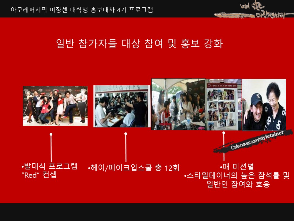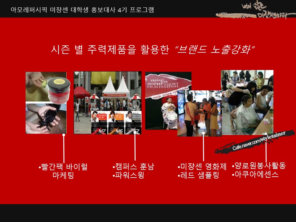 아모레퍼시픽의 대학생 홍보대사 프로그램인 미쟝센 스타일테이너 활동의 몇가지 성공 포인트를 소개합니다.
