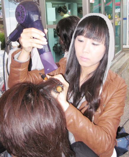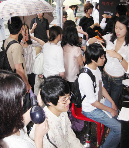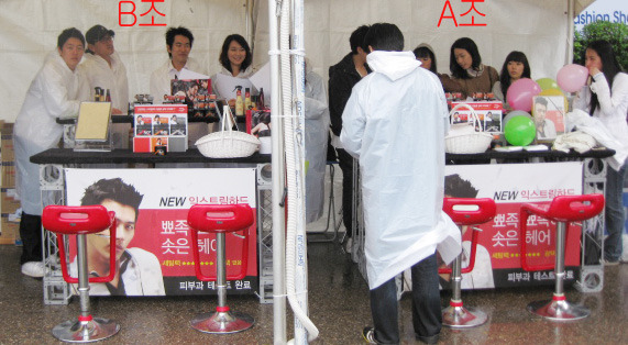 이제 슬슬 한양대 남학우들의 발길이 스타일테이너 부스로 향하기 시작하고 모여든 인파로 부스앞이 조금씩 인파로 채워지기 시작합니다.
