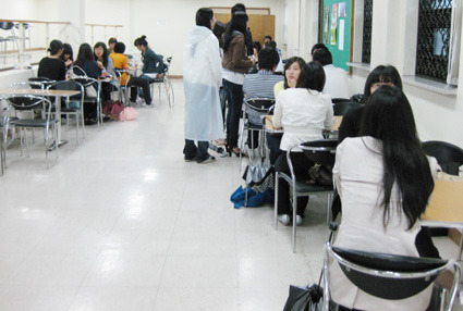 그런데, 학생회관 앞에 줄을 서 모여든 이들은 무엇때문에 우산을 든채 한곳을 응시하는 것일까요?