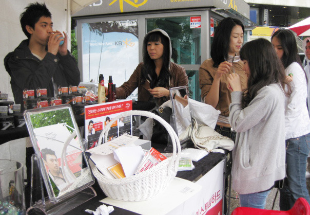 이제 슬슬 한양대 남학우들의 발길이 스타일테이너 부스로 향하기 시작하고 모여든 인파로 부스앞이 조금씩 인파로 채워지기 시작합니다.