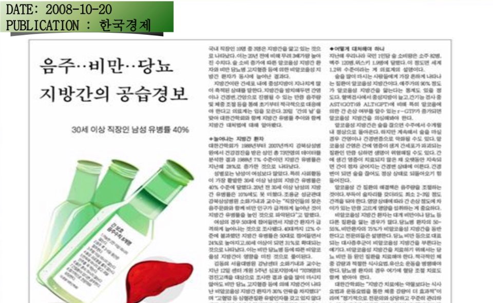 이는 비만 등 서구화된 식습관으로 유발된 것으로, 또한번 간건강 관리의 중요성을 일깨우는데 의미있는 메시지를 사회에 던질 수 있는 좋은 기회였습니다.
